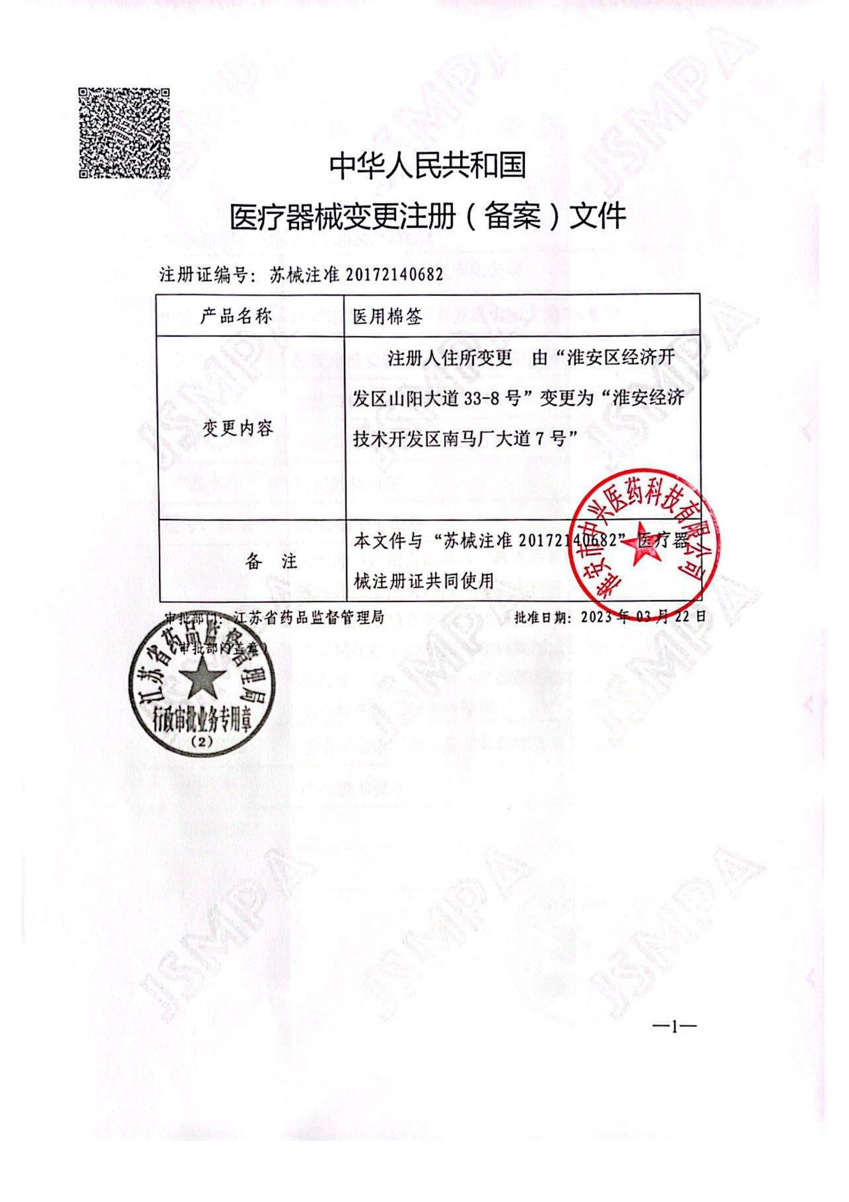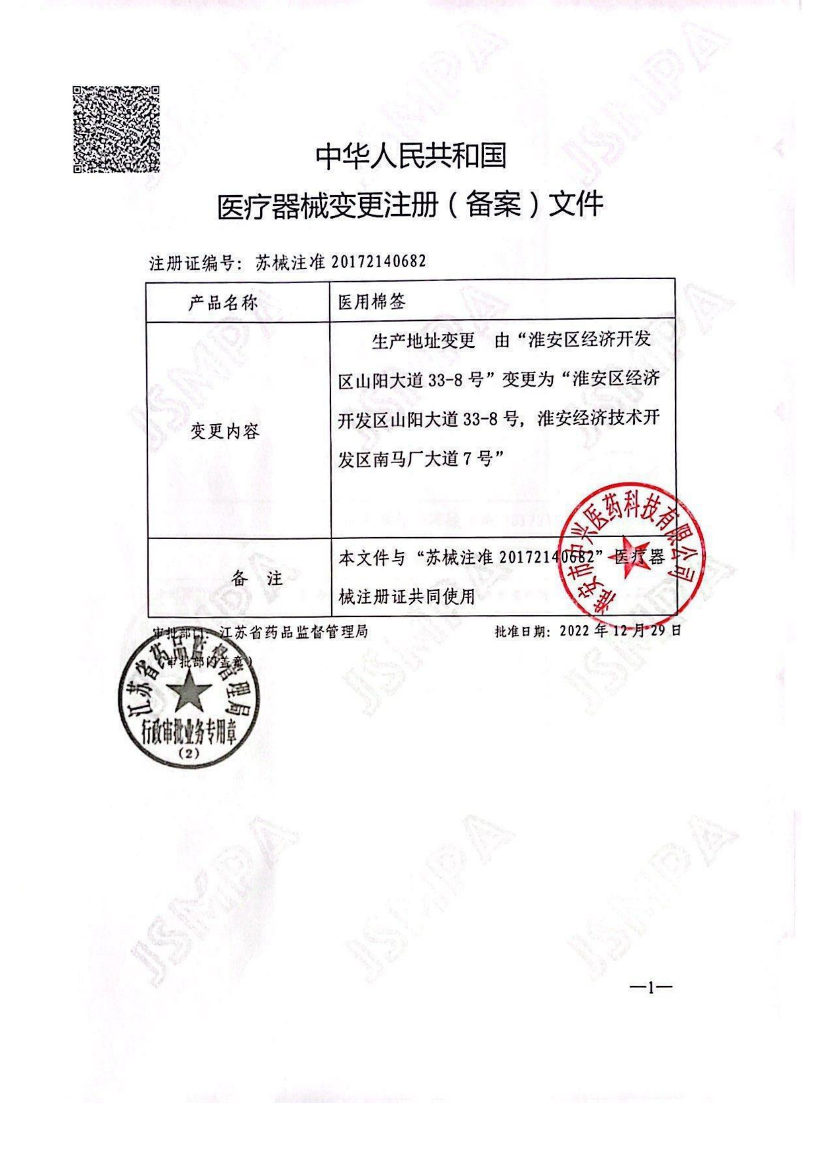 醫(yī)療器械注冊(cè)證(醫(yī)用棉簽)