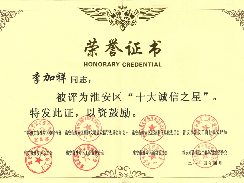公司先后獲得淮安市價格誠信單位、AA級重合同守信用企業(yè)、年度先進單位、江蘇省、市級價格誠信單位、江蘇省醫(yī)療器械行業(yè)協(xié)會副會長單位等省市級榮譽。獲2020年“鑫智力杯”創(chuàng)新型企業(yè)評選活動“淮安市科技之星企業(yè)”稱號、2020年度被授予首屆“淮安區(qū)誠信示范企業(yè)”稱號。